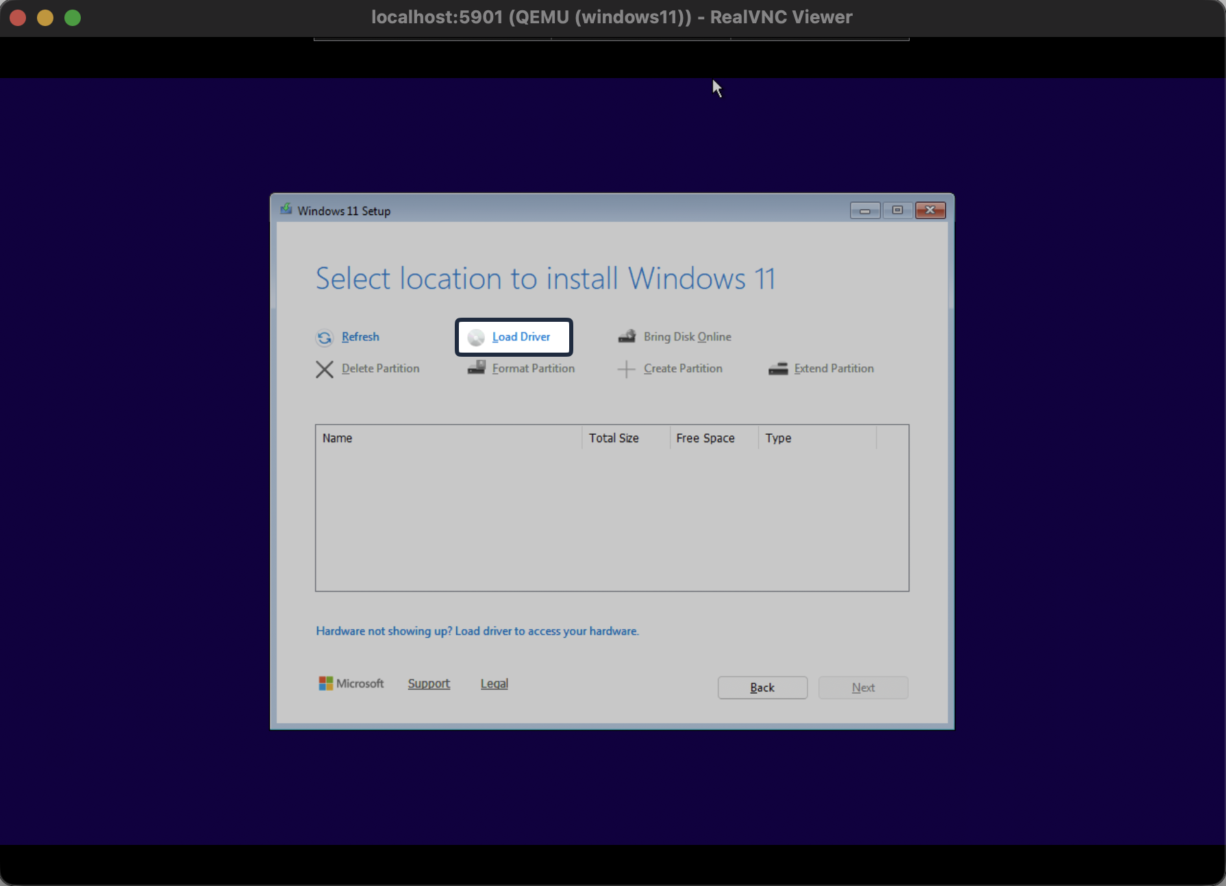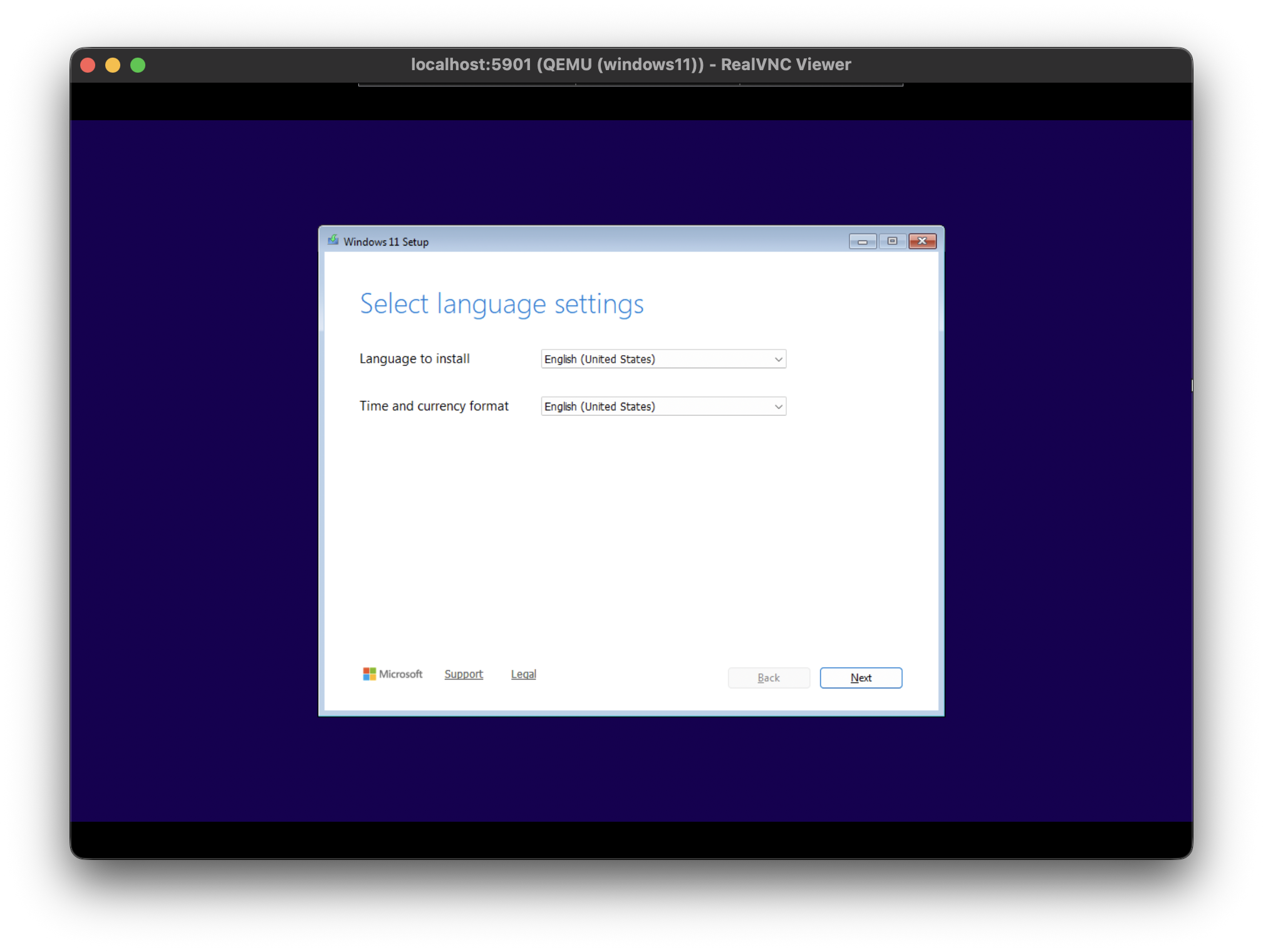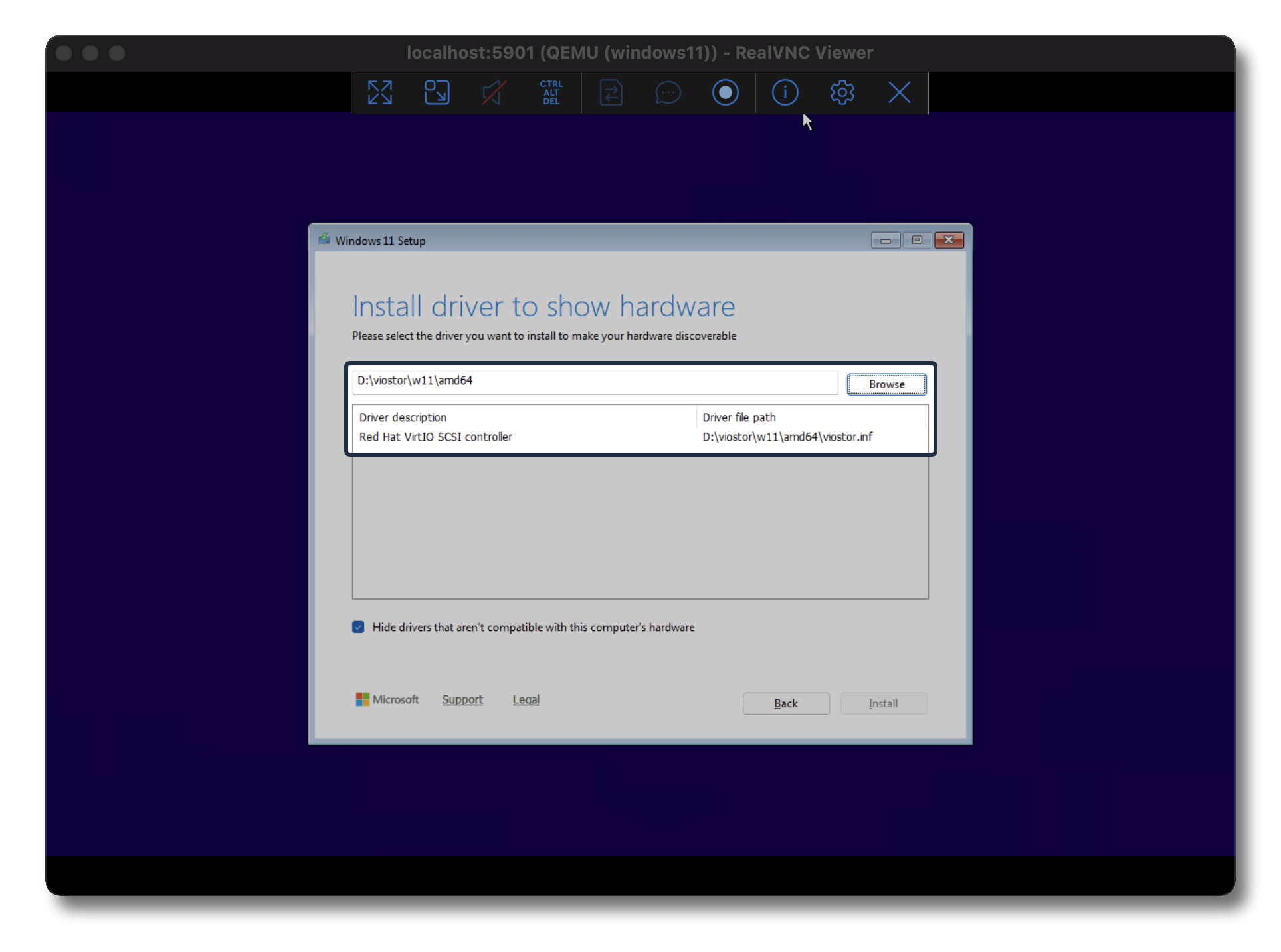 Go ahead and execute an CTRL + ALT + DEL within your VNC program to force a reload of the installation (be sure to press ANY key when prompted again), which will force the system to load the Windows 11 ISO installation image. Depending on your system, this could take several minutes.