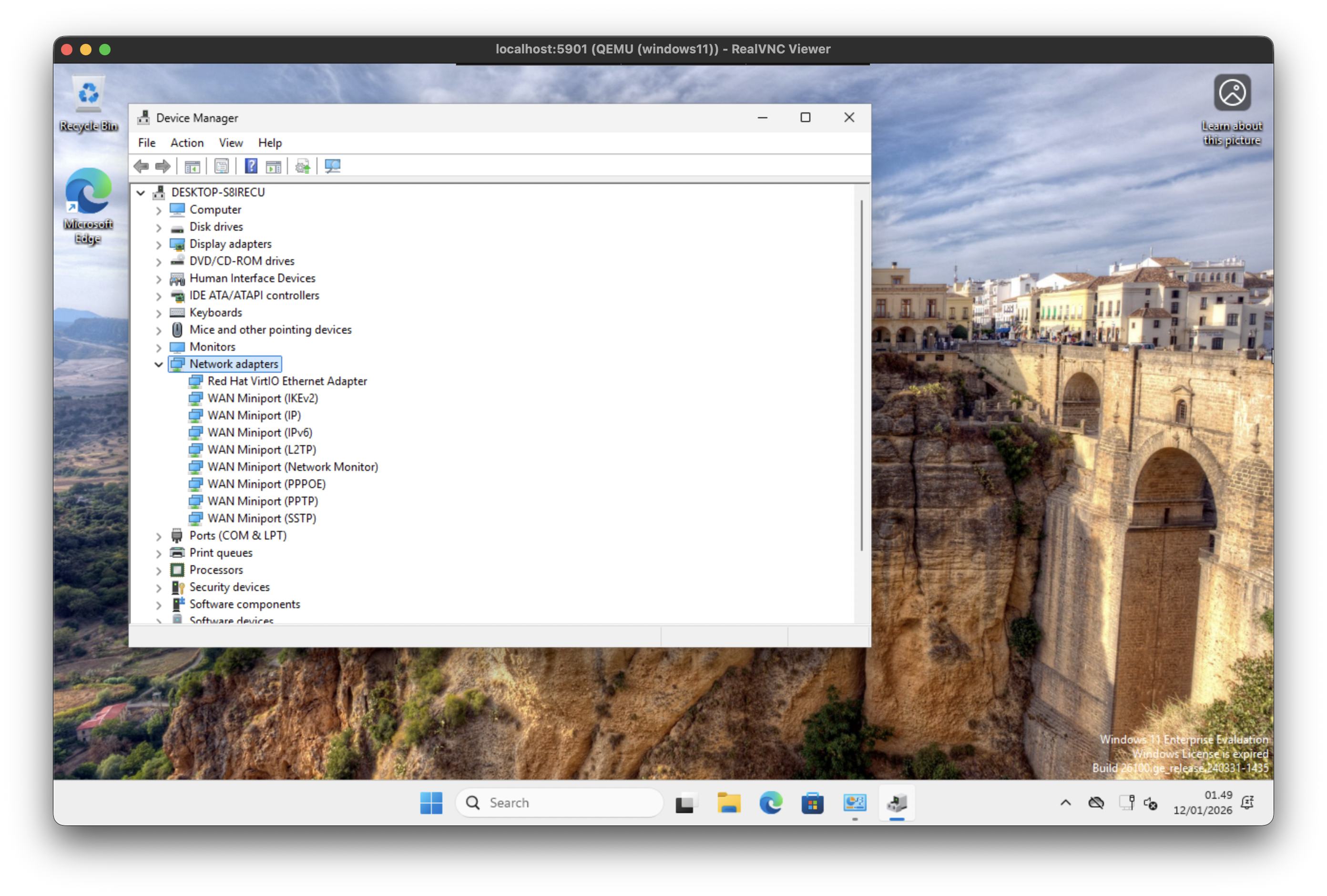 After the driver installation has succeed you should be seeing the ‘Red Hat VirtIO Ethernet Adapter along with the other ‘WAN Miniport XYZ’